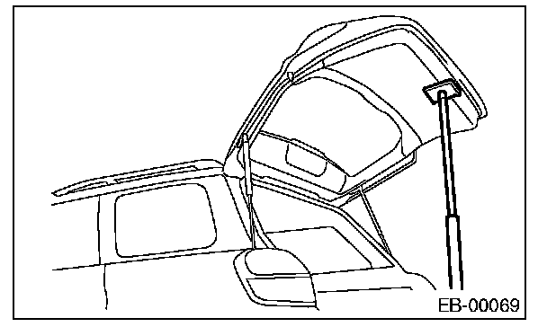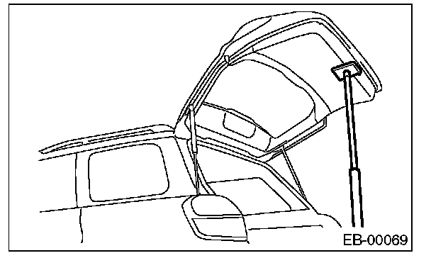2. Before removing the rear gate damper stay, prevent the rear gate from closing using prop or the like.