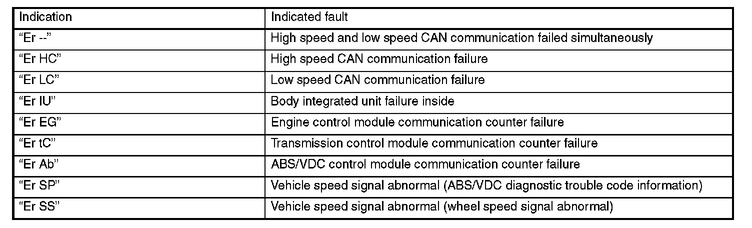 - At the trip meter display, the illumination level and the following trouble information (abnormality of various control modules, communication system, vehicle speed signals, etc.) are shown in addition to the trip meter reading.