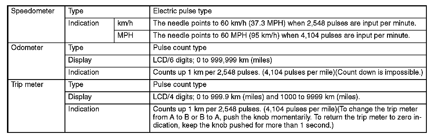 The ABS or VDC control module calculates the vehicle speed based on signals from the four wheel speed sensors and sends vehicle speed signals (4 pulses per rotation of wheel) to the speedometer drive circuit and odometer/trip meter drive circuit in the speedometer.