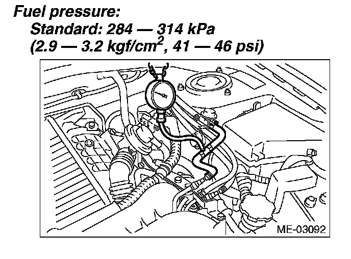 NOTE: The fuel pressure gauge registers 10 to 20 kPa (0.1 to 0.2 kgf/cm�, 1 to 3 psi) higher than standard values during high-altitude operations.