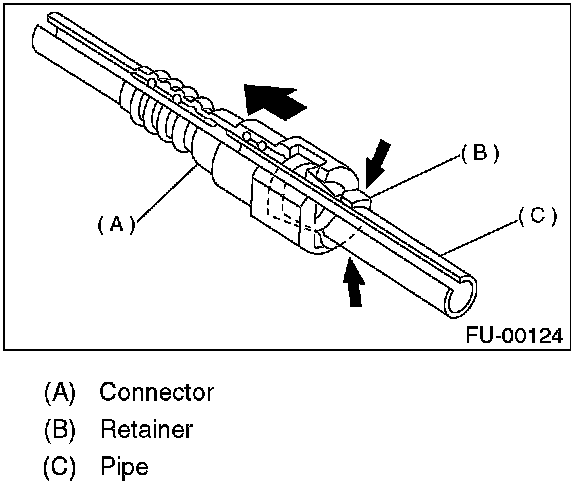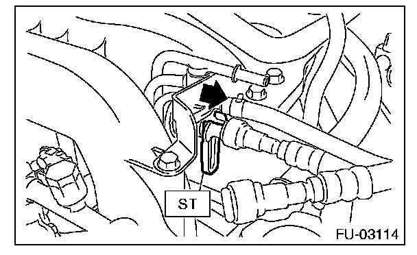 6. Attach ST to the fuel delivery pipe and push ST in the direction of arrow mark to disconnect the fuel delivery hose.