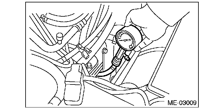 9) Crank the engine by the starter motor, and read the maximum value on the gauge when the needle of gauge is steady.