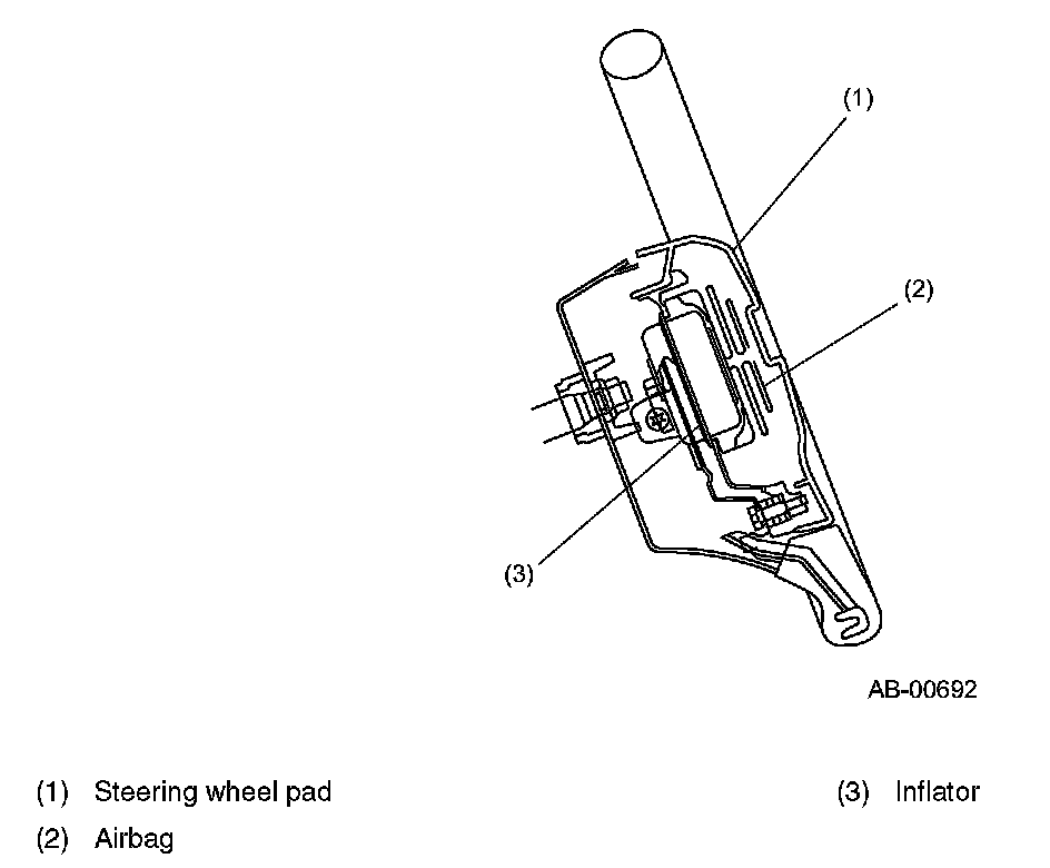 The SRS airbag module assembly cannot be disassembled. The driver's seat airbag module assembly consists of an inflator and airbag, and a steering wheel pad.