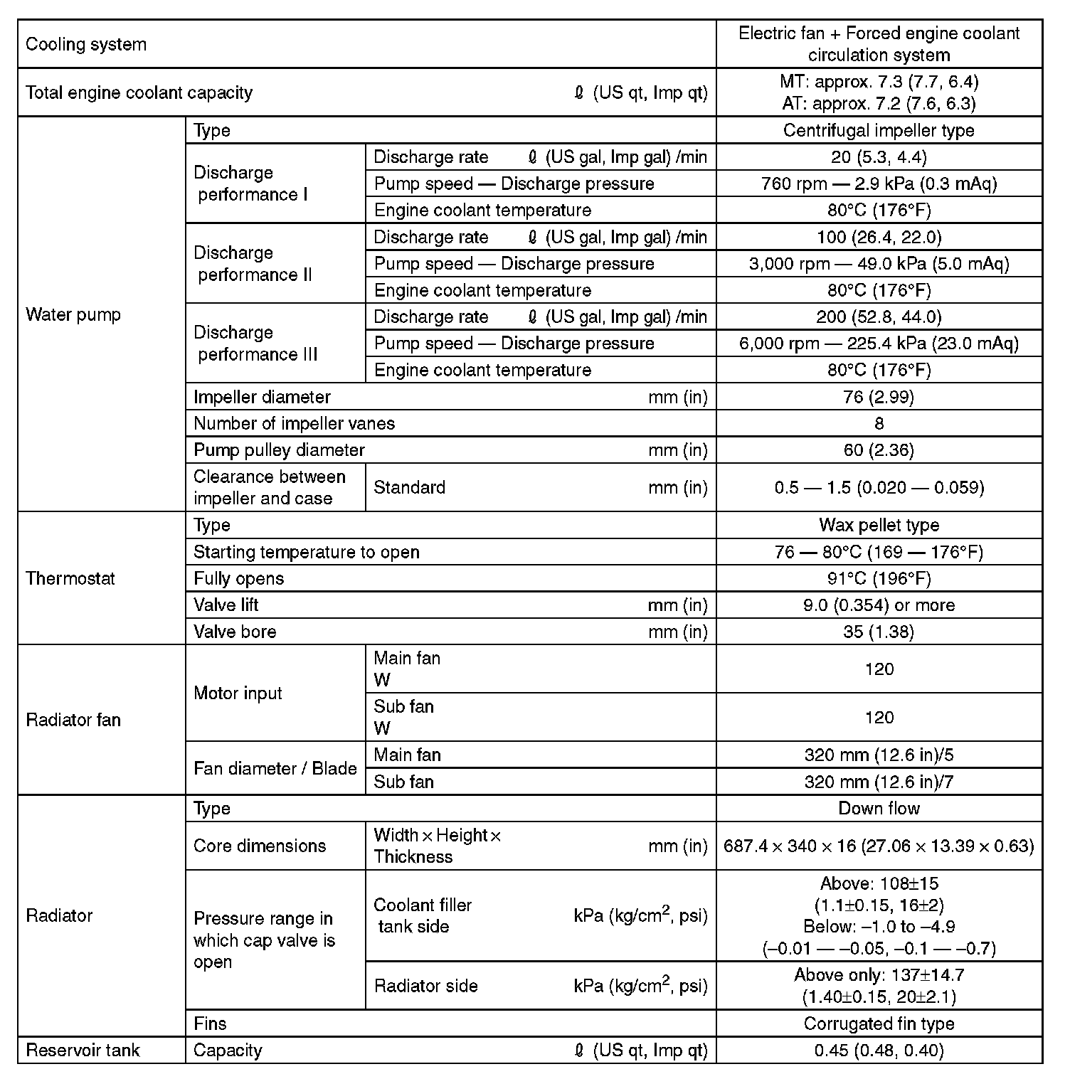 Capacity Specifications