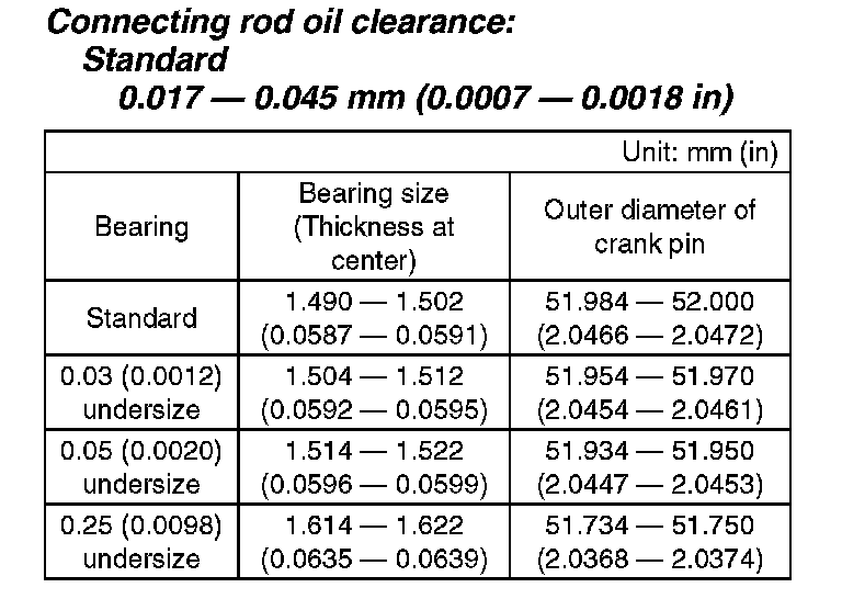 Crankshaft oil clearance, standard 0.010 - 0.030 mm (0.0004 - 0.0012 inch)