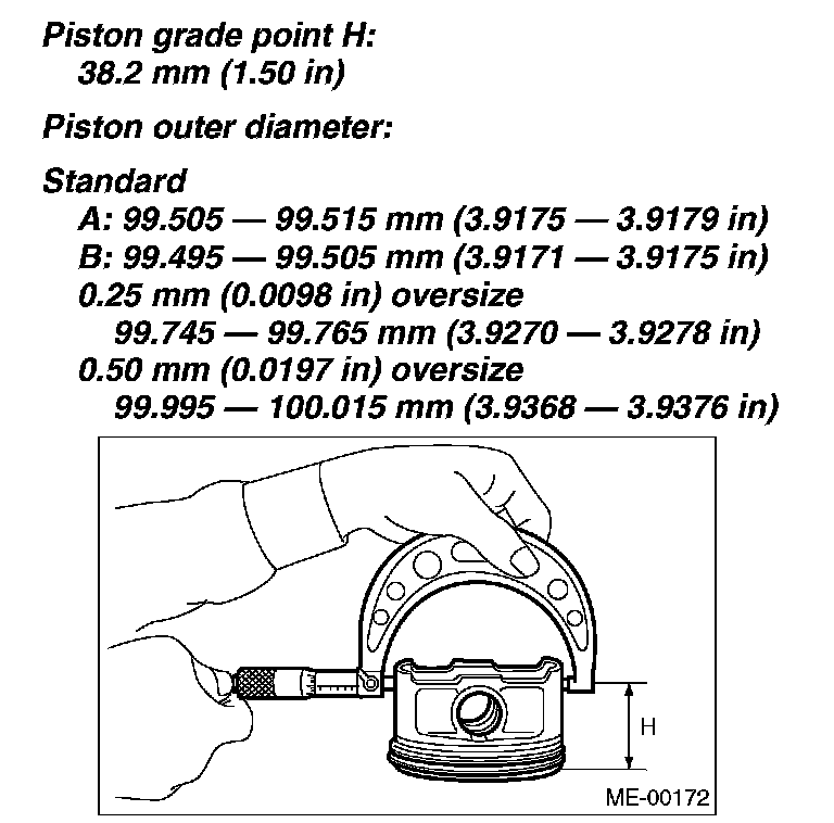 0.50 mm (0.0197 inch) oversize 99.995 - 100.015 mm (3.9368 - 3.9376 inch)