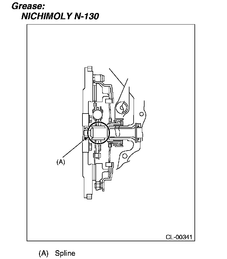 ^ Transmission main shaft spline (Use grease containing molybdenum disulphide.)