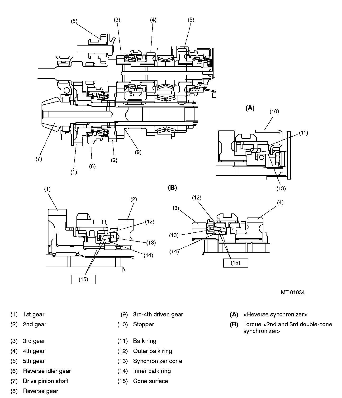 - On non-turbo models, a double cone synchromesh mechanism is used for 2nd and 3rd speed gears.