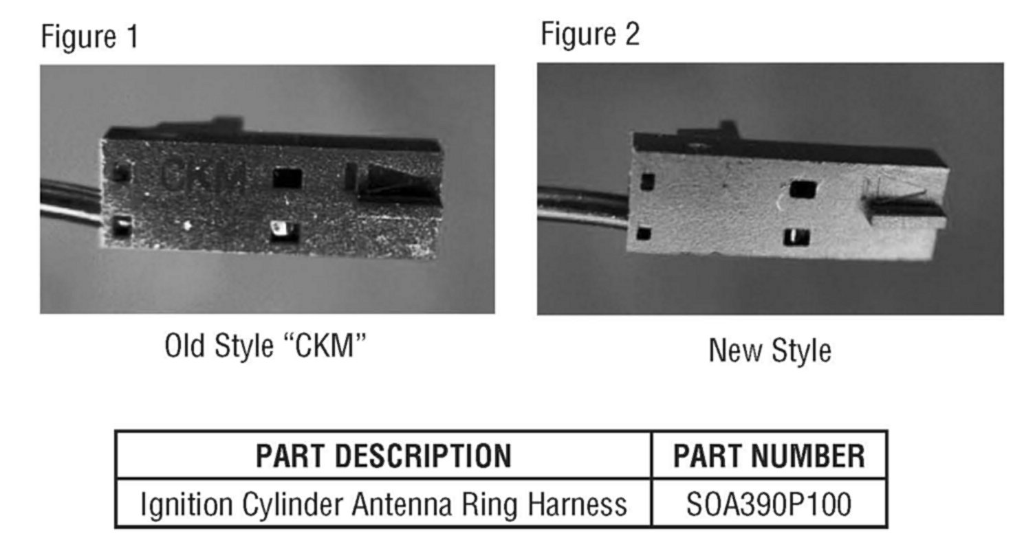 The immobilizer interface antenna harness has been modified The old style connector has "CKM" marked on the bottom (Figure 1) The new style connector has no markings (Figure 2)