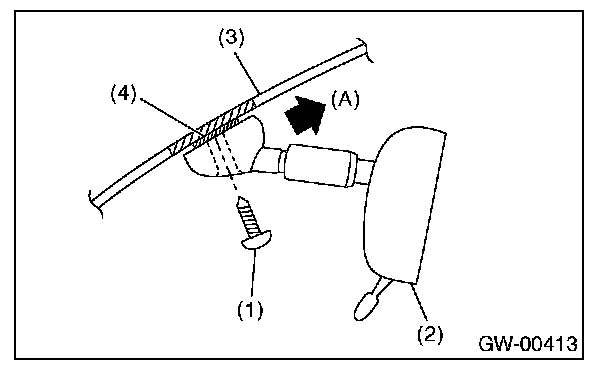 2. Slide the rearview mirror (2) to the upper side of windshield glass (3), and remove the rearview mirror (2) from button (4).