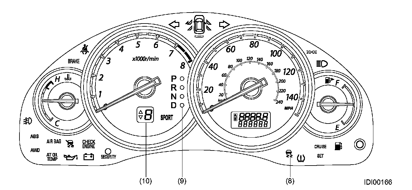 The indicator corresponding to the present AT select lever position illuminates when the ignition switch is in any position other than ACC and LOCK.