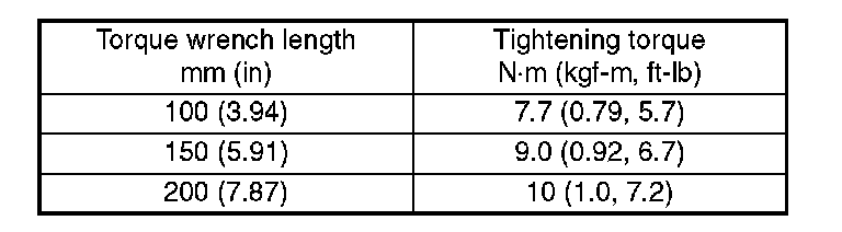 T1: 14 Nm (1.4 kgf-cm, 10.1 ft. lbs.)