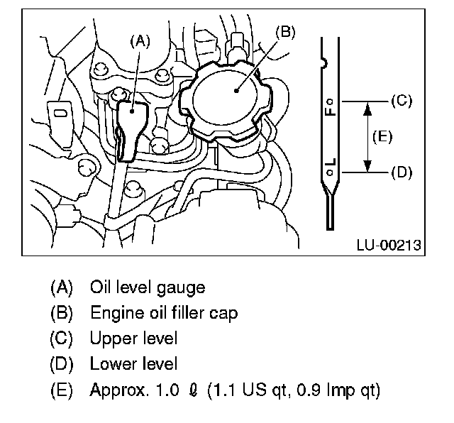 8. After the engine stops, recheck the oil level. If necessary, add engine oil up to the upper level on level gauge.