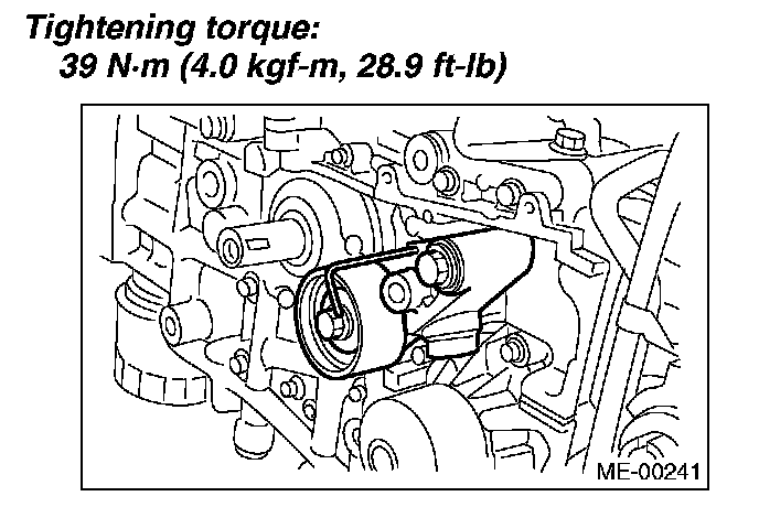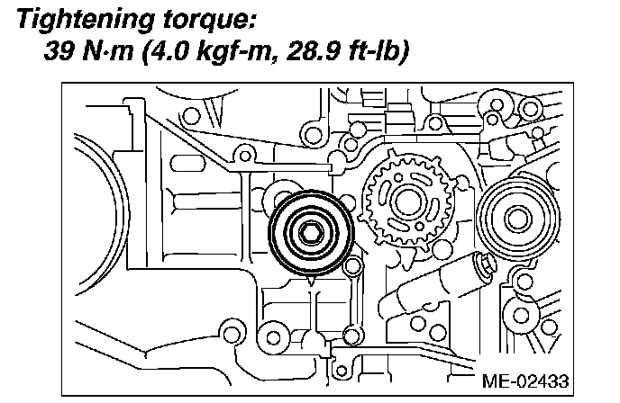 Tightening torque: 39 Nm (4.0 kgf-m, 28.9 ft. lbs.)