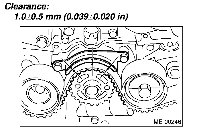 2. Check and adjust the clearance between timing belt and timing belt guide by using thickness gauge.