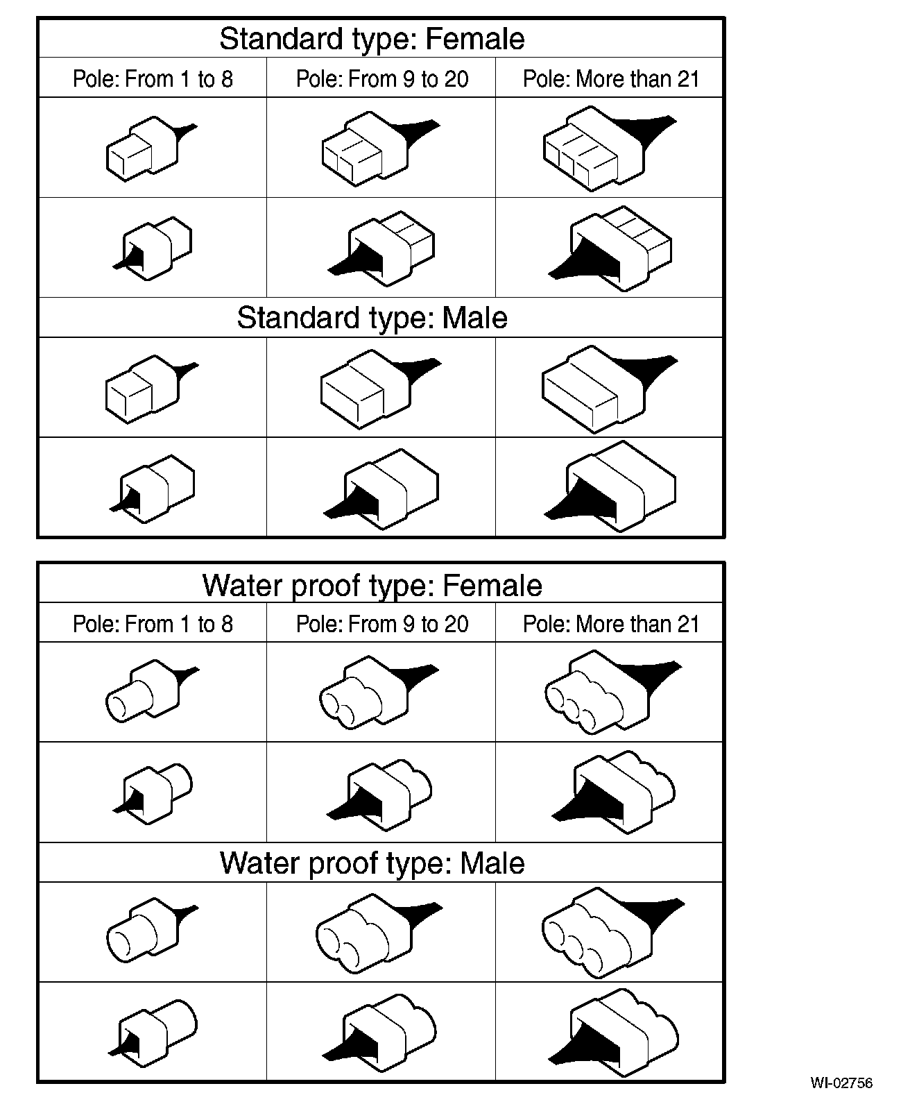 A number of connector symbols are used in each wiring diagram to easily identify the wiring harness connectors.