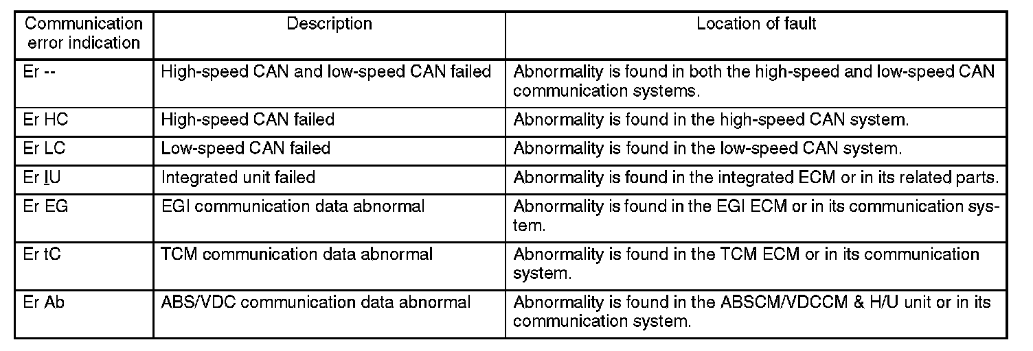 - If more than one diagnostic trouble code is stored, indication is given in the following order of priority: (1) High-speed CAN (2) Low-speed CAN (3) integrated unit (4) EGI (5) TCM (6) VDC