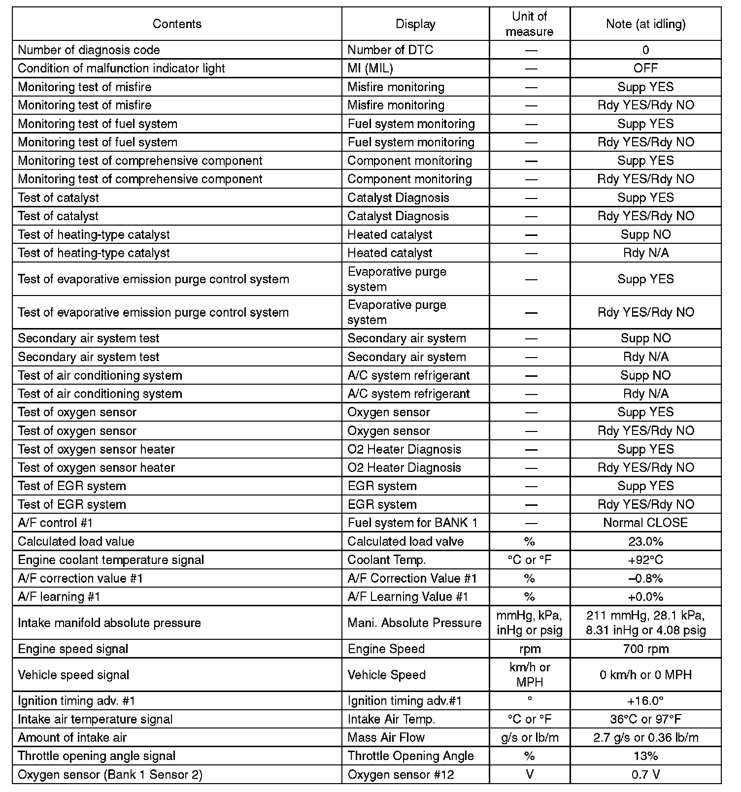 4. READ CURRENT DATA FOR ENGINE (NORMAL MODE)
