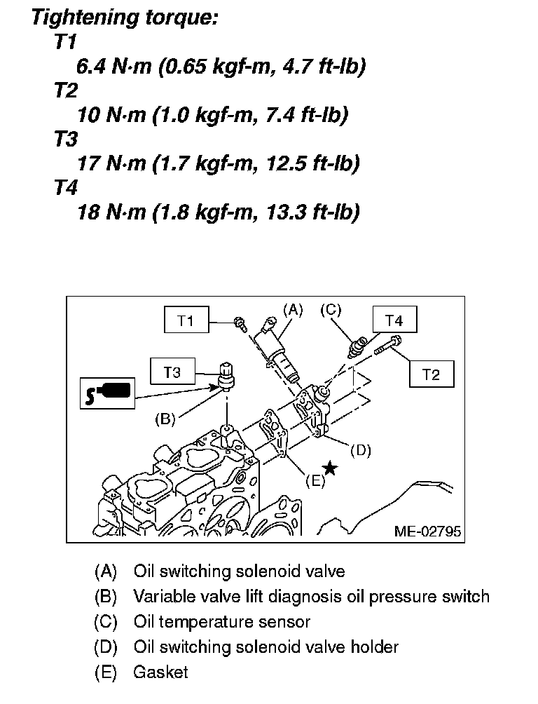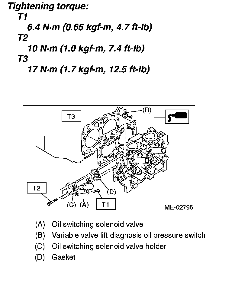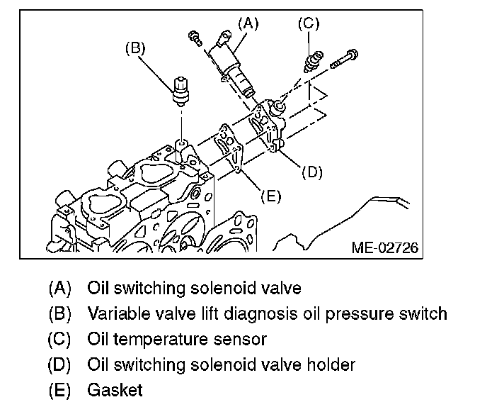 8. Remove the oil switching solenoid valve holder from the cylinder head.