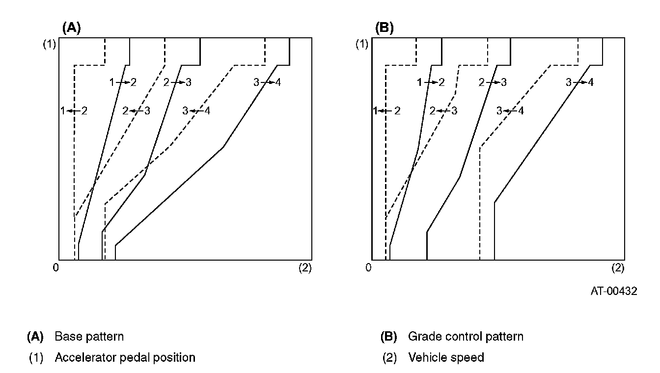 When the accelerator pedal is quickly depressed, the TCM interprets this as acceleration is required, and the transmission is downshifted earlier to obtain a greater drive force.