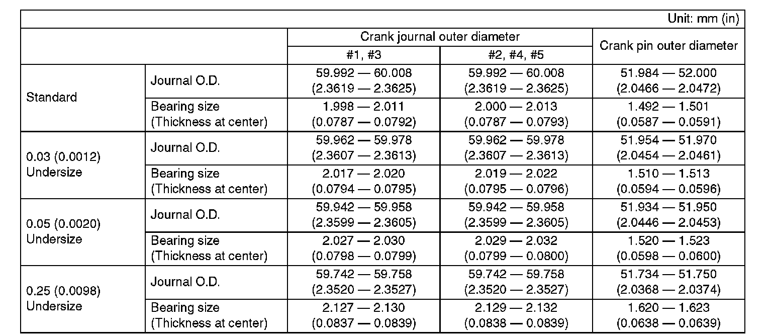 0.25 mm (0.0098 inch) OS 99.745 - 99.765 mm (3.9270 - 3.9278 inch)