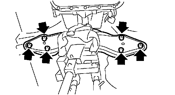 NOTE: Make sure that the support plates of transmission jack does not touch the oil pan.
