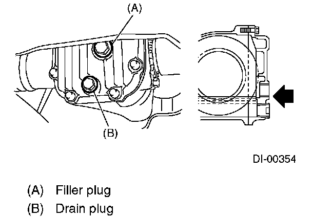 2. Check that the gear oil level is up to the bottom of filler plug hole. If the level is low, refill up to the bottom of filler plug hole.