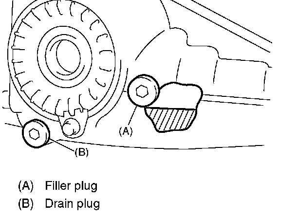 1. Remove the filler plug, and then check the gear oil. If it is contaminated or deteriorated, replace the gear oil.