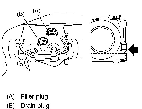 4. Fill the differential carrier with gear oil to the bottom of filler plug.
