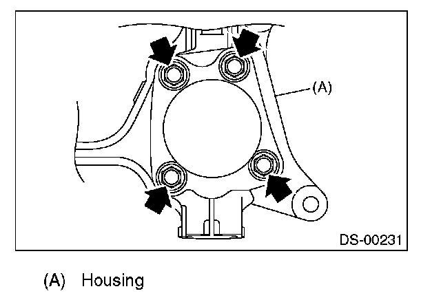 DISASSEMBLY1. Remove the four bolts from the housing, and remove the front hub unit bearing and disc cover.