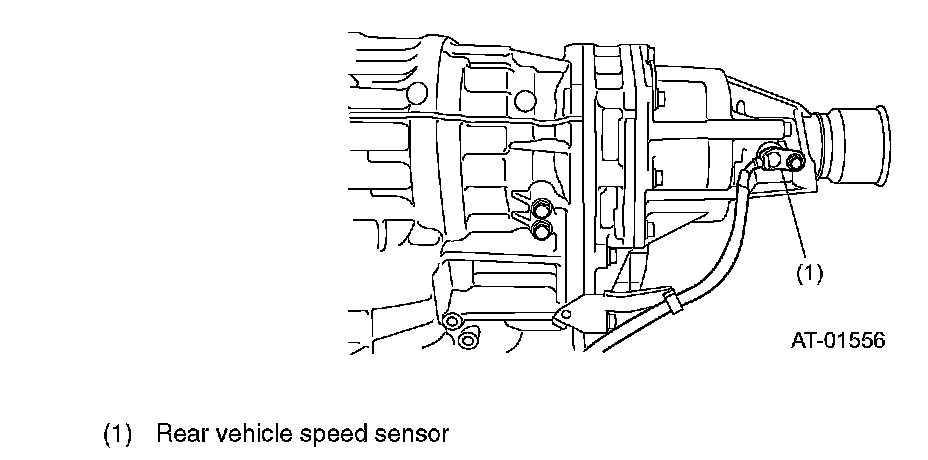 This vehicle speed sensor is a Hall element type sensor and is externally mounted on the extension case. It detects the rear wheel speed in terms of the peripheral speed of the rear drive shaft and sends pulse signals (22 pulses per rotation) to the TCM.