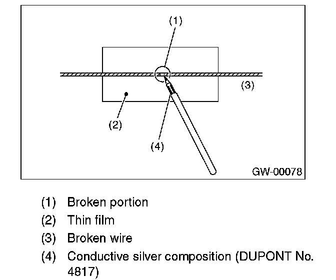3. Apply the conductive silver composition (DUPONT No. 4817) to the broken portion.