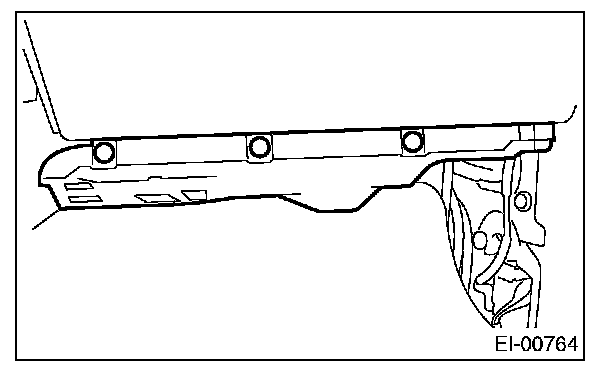 7. Remove the passenger side front inside scuff plate (A) and front pillar lower trim (B).