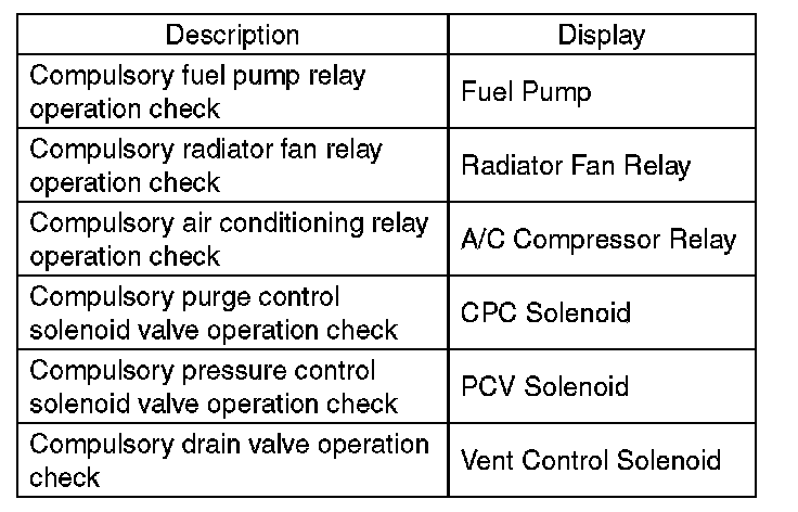11. Select the desired compulsory actuator on the "Actuator ON/OFF Operation" display screen.