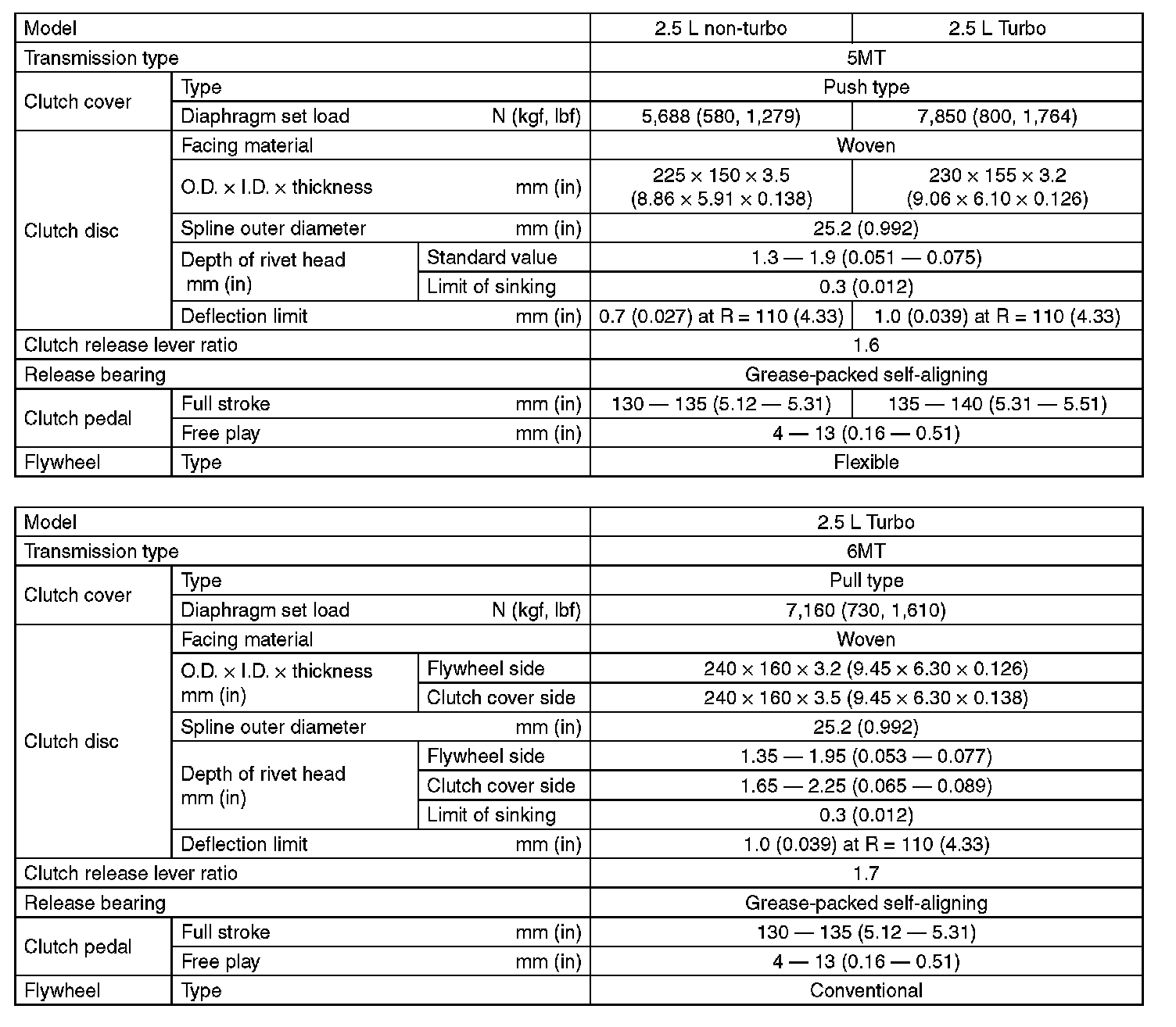 Clutch: Specifications