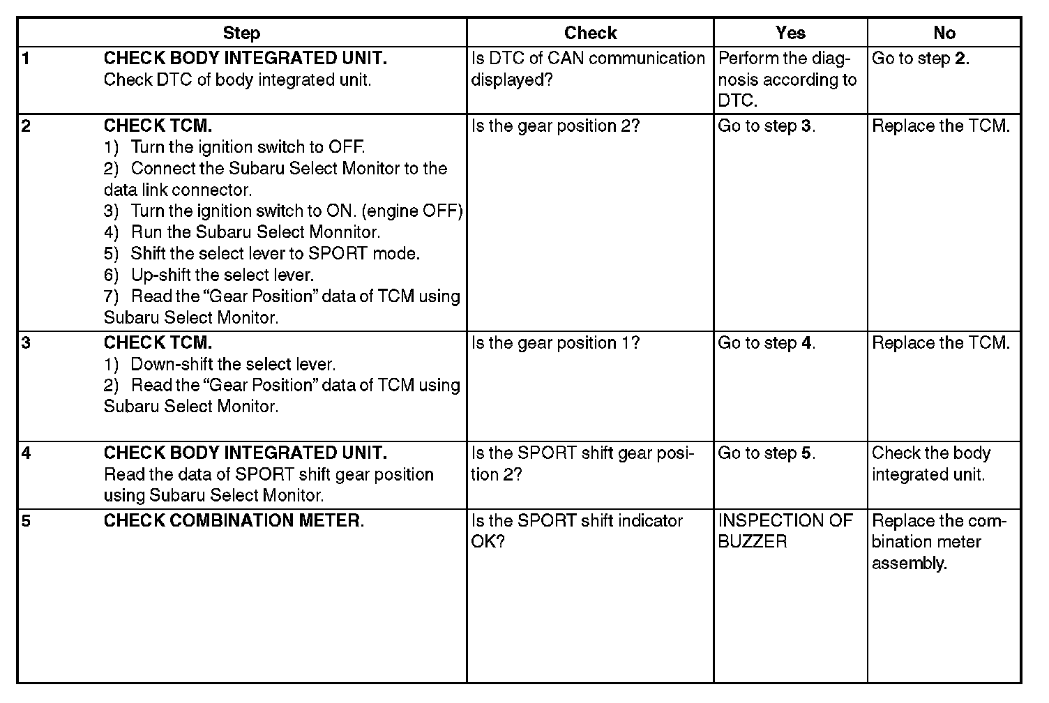 CHECK SPORT SHIFT INDICATOR