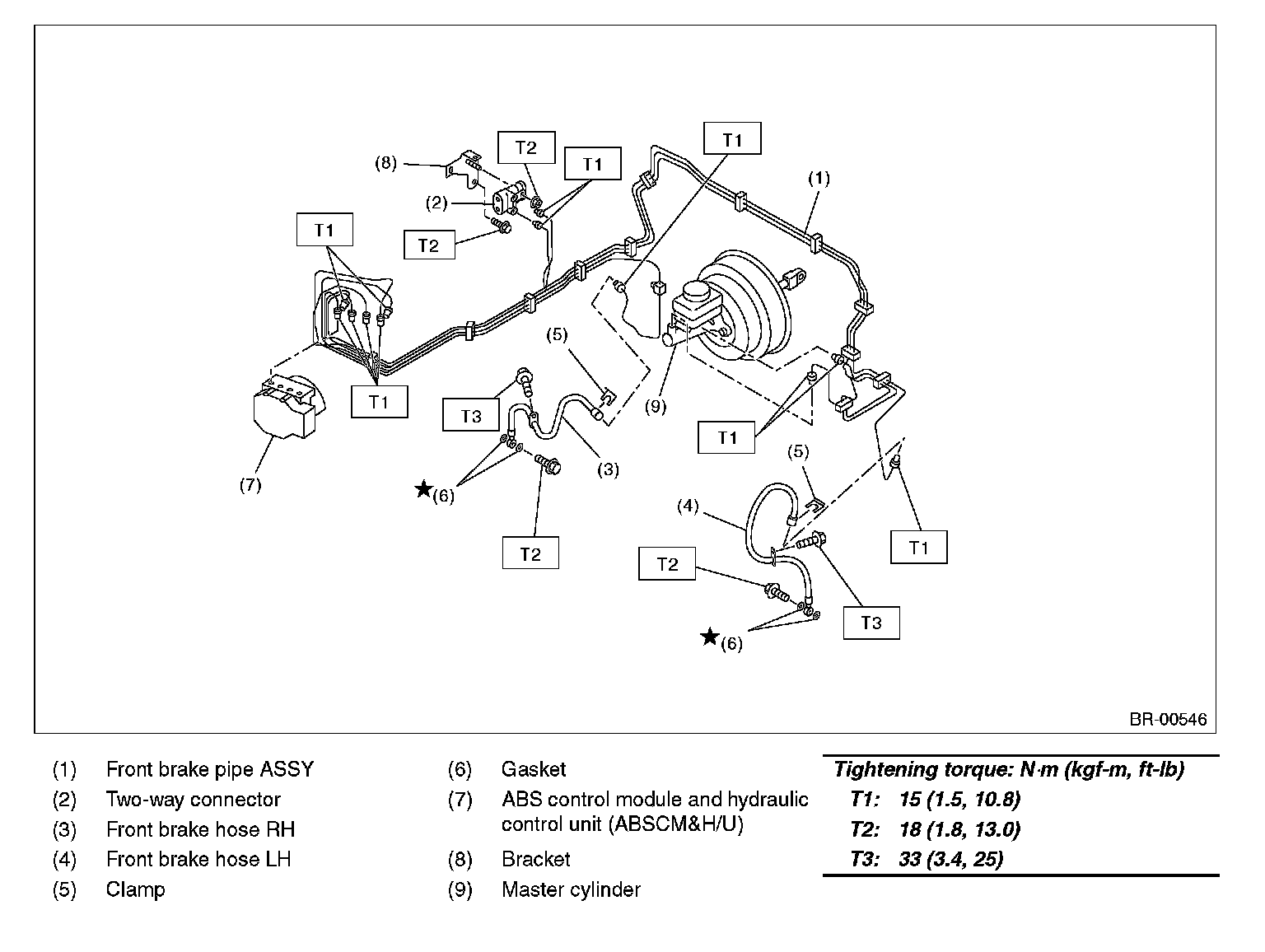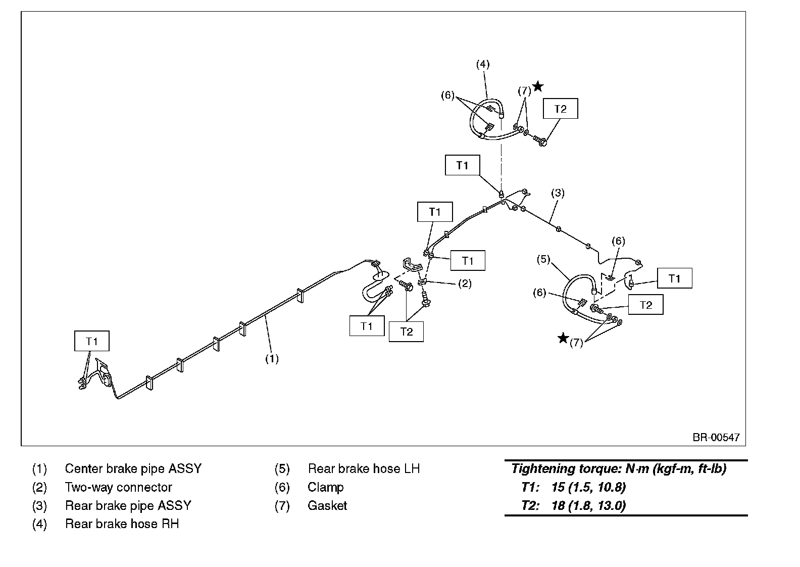 CENTER AND REAR BRAKE PIPES AND HOSES: