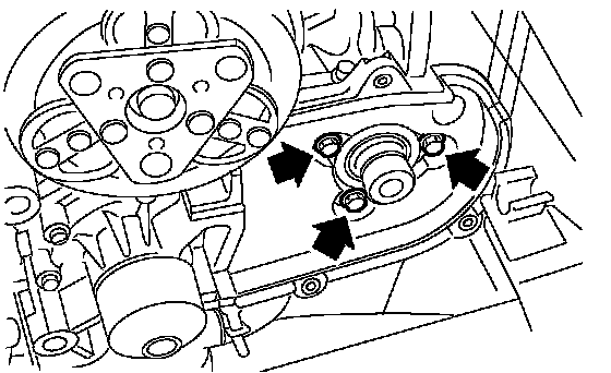 ^ When installing the water pump, tighten the bolts in two stages in alphabetical sequence as shown in the figure.