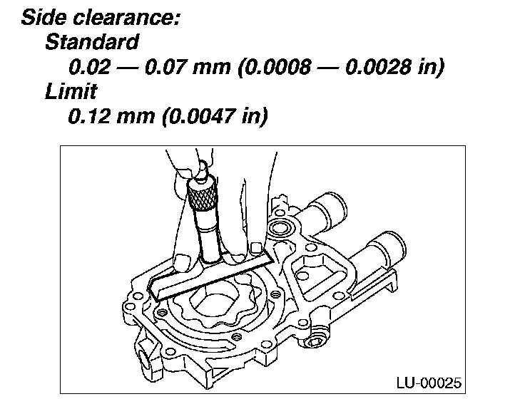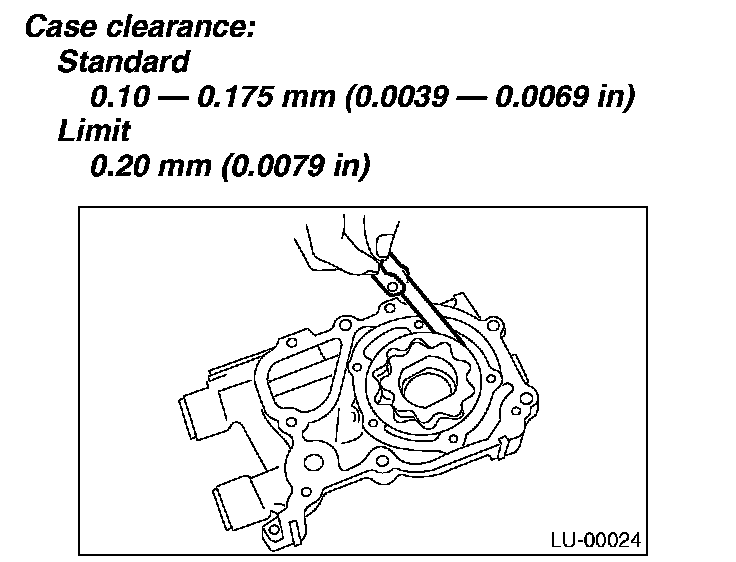 Measure the clearance between the outer rotor and oil pump rotor housing. If clearance exceeds the standard, replace the rotor.