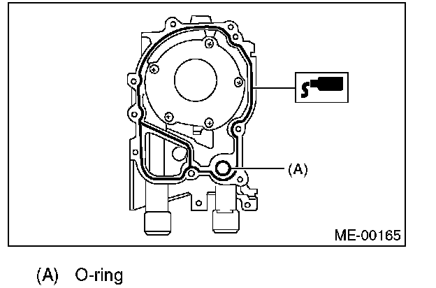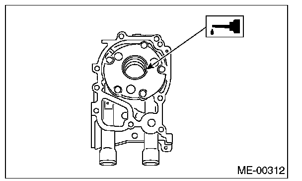 2) Apply liquid gasket to the mating surfaces of oil pump.