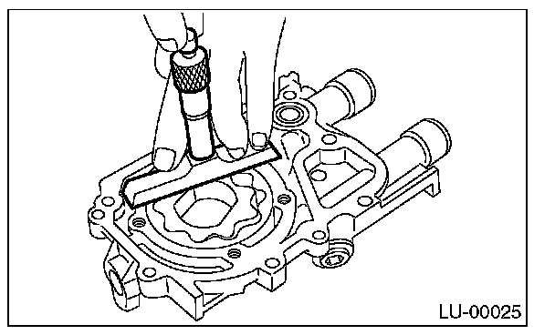 Measure the clearance between outer rotor and oil pump case. If the clearance exceeds the limit, replace the oil pump case.