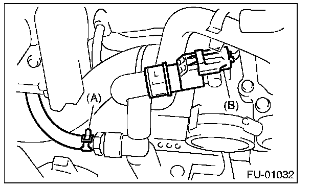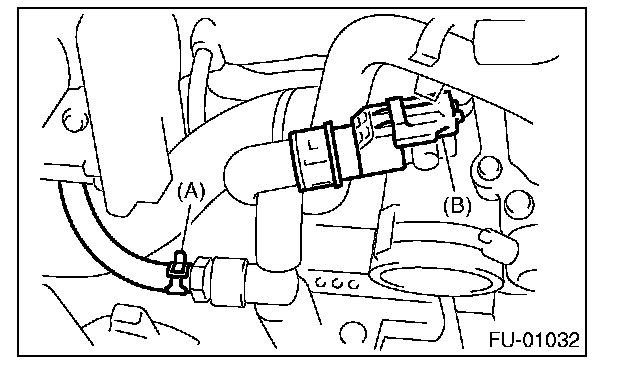 12. Connect the emission hose (A) and the connector (B) to the PCV hose assembly.