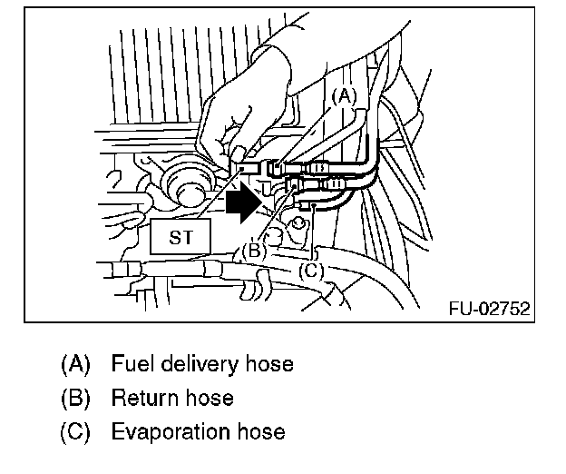 25. Using the ST, disconnect the fuel hose from each fuel pipe.