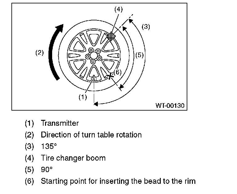 ^ To prevent damaging the transmitter, set the tire changer boom in the position as shown in the figure.