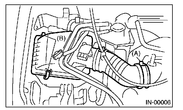 3. Loosen the clamps (A) which connect the air intake boot and the intake duct.