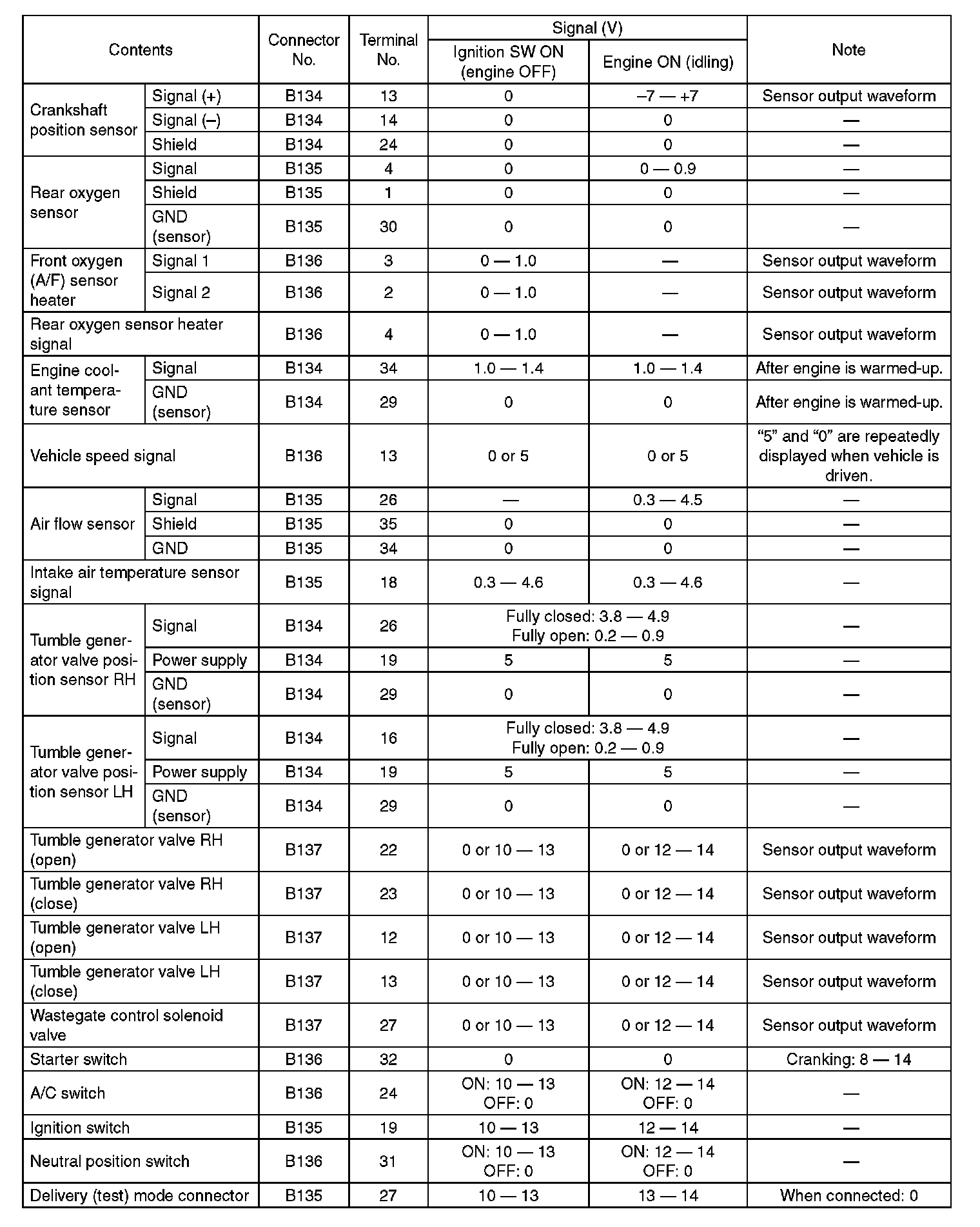Engine Control Module (ECM) I/O Signal-Electrical Specification (Part 5):