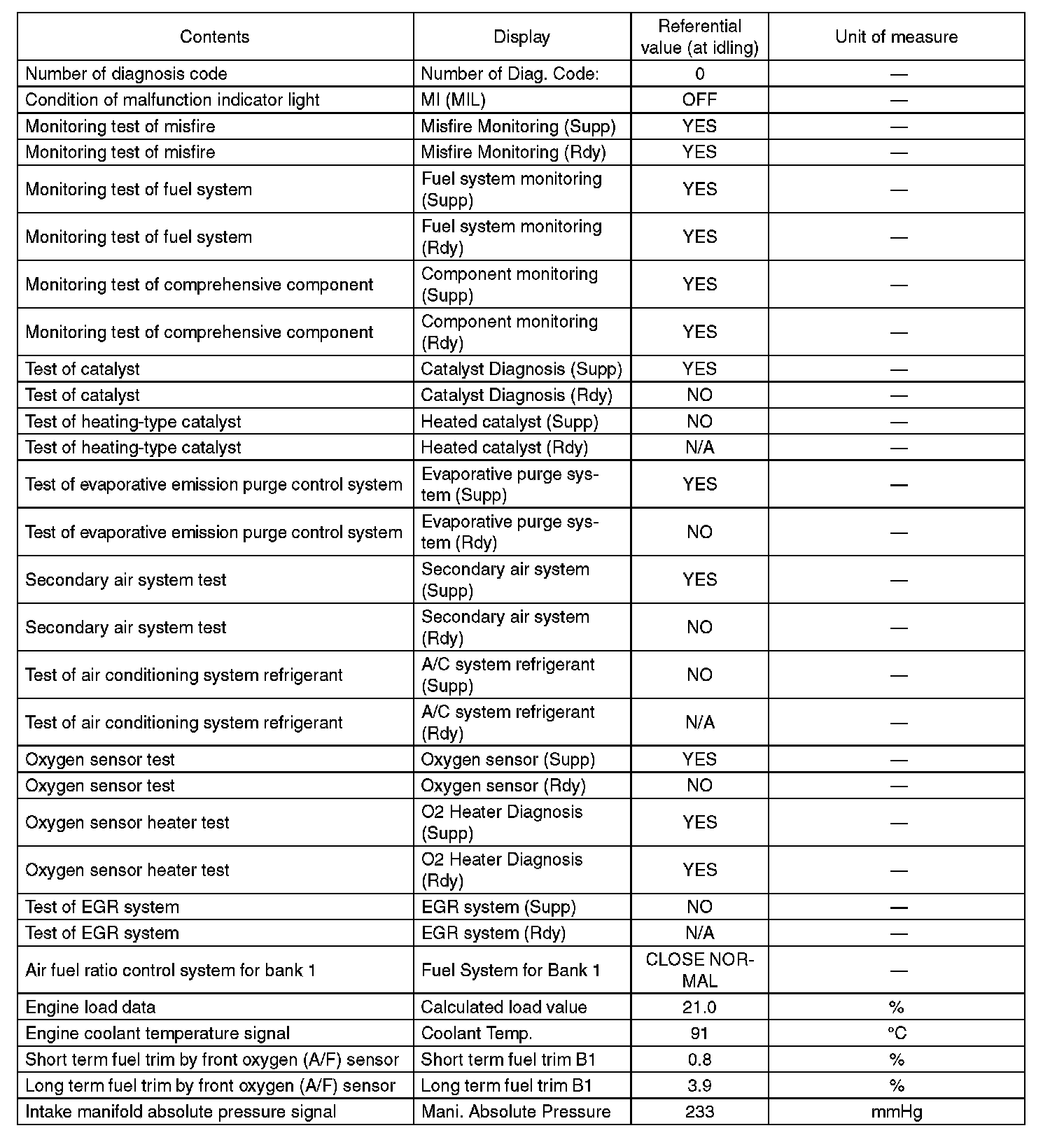 4. READ CURRENT DATA FOR ENGINE (NORMAL MODE)