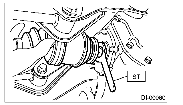 11) Remove the DOJ of rear drive shaft from rear differential using ST.