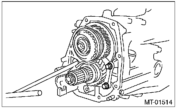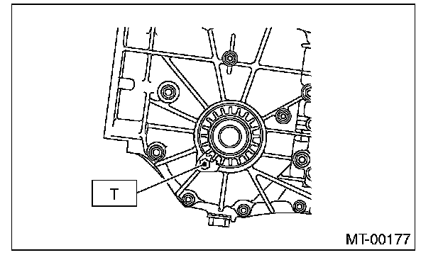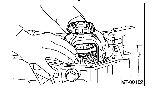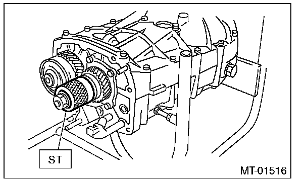 9) Place the transmission with the left side of case facing downward, and put ST1 on bearing cup.