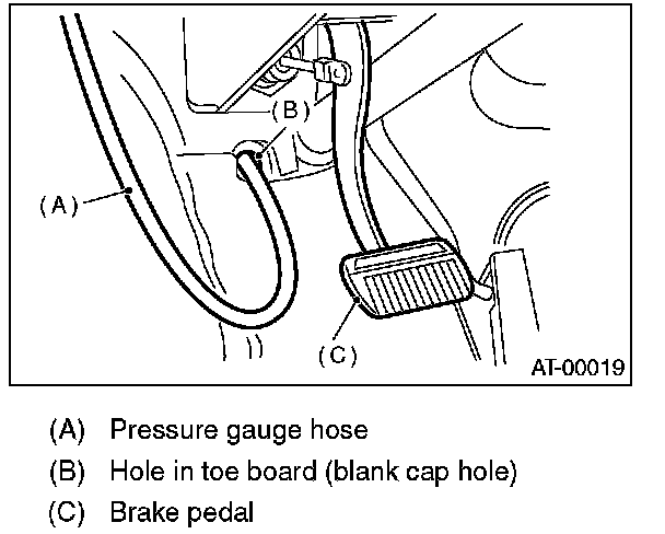 1) Before measuring line pressure, apply both the foot and parking brakes with all wheels chocked (same as for "stall" test conditions).